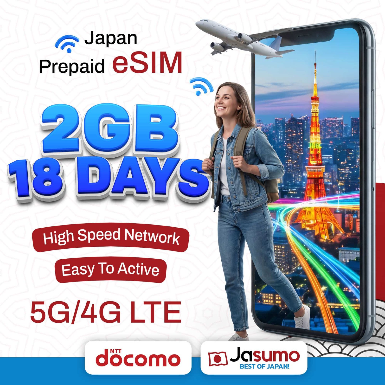 Stay connected throughout your trip with the Japan eSIM 18-Day 2GB Plan. Powered by the reliable Docomo network, it provides stable coverage across major cities and travel destinations.
