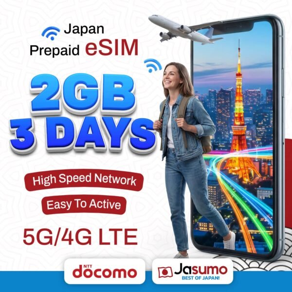 Stay connected throughout your trip with the Japan eSIM 3-Day 2GB Plan. Powered by the reliable Docomo network, it provides stable coverage across cities and popular travel destinations.