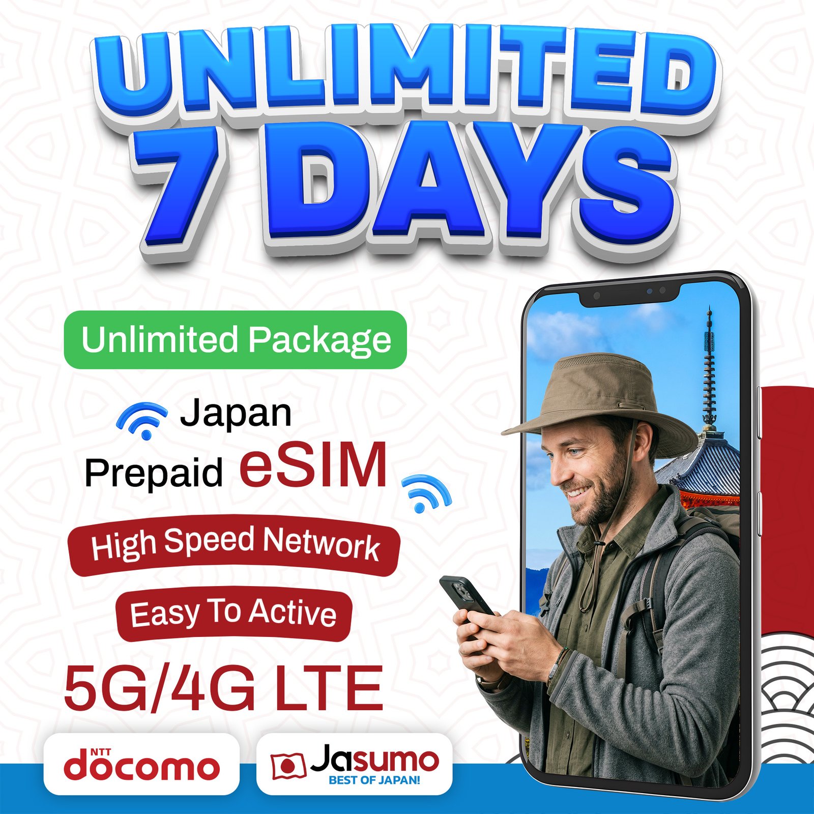 Stay connected throughout your trip with the Japan eSIM 7-Day Unlimited Plan. Powered by the reliable Docomo network, it delivers strong and stable coverage across cities, travel routes, and tourist destinations.