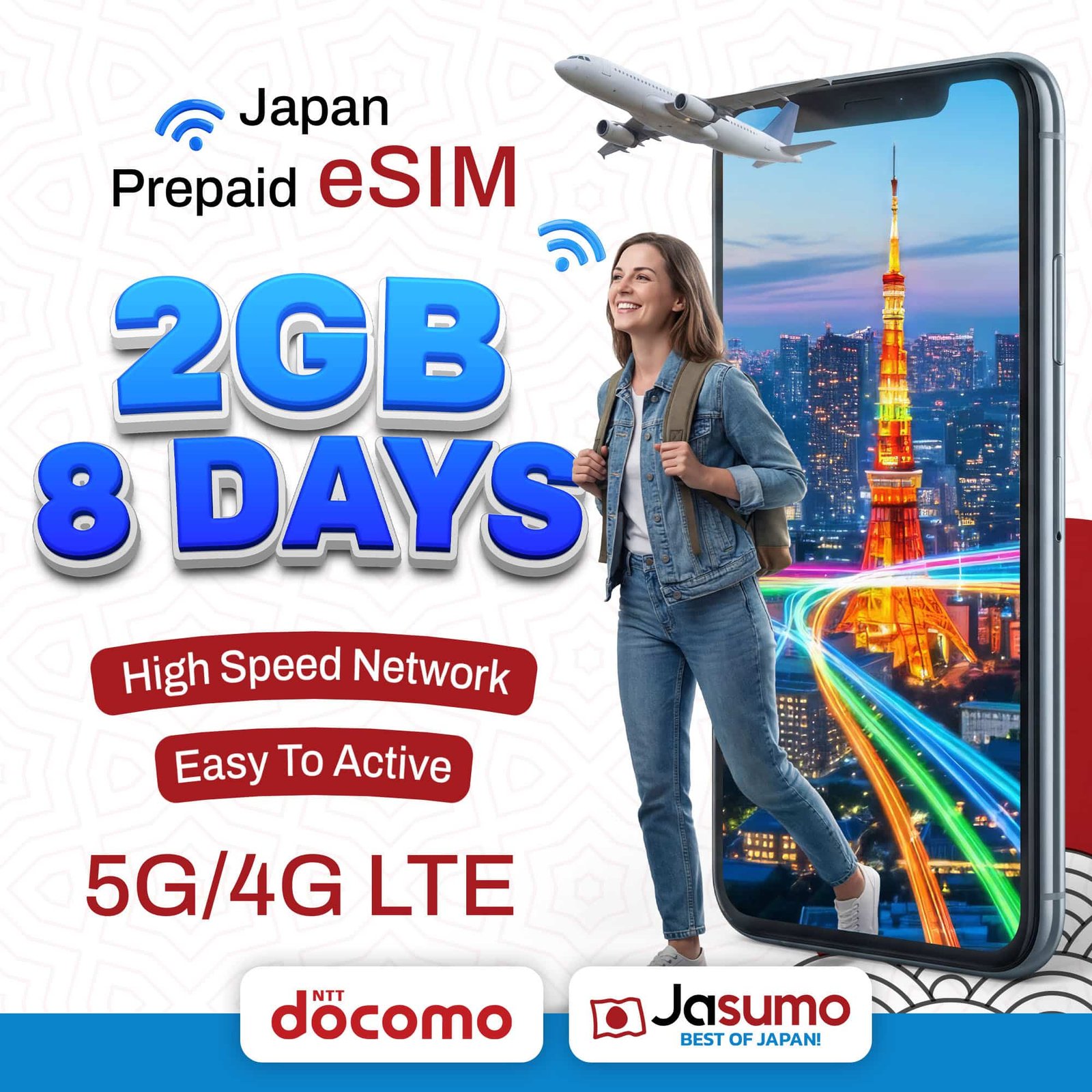 Stay connected throughout your trip with the Japan eSIM 8-Day 2GB Plan. Powered by the reliable Docomo network, it provides stable coverage across major cities and travel destinations.